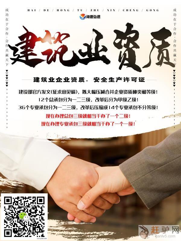 其次,资质代办公司的费用并不是都很贵的。正常来说,资质代办的费用和资质代办的服务是成正比的原文www.ganlv5.com。资质代办可以让你省去各个跑上跑下的环节,也能节省因为各种原因而多花的冤枉钱,资质代办的效率还是挺高的。