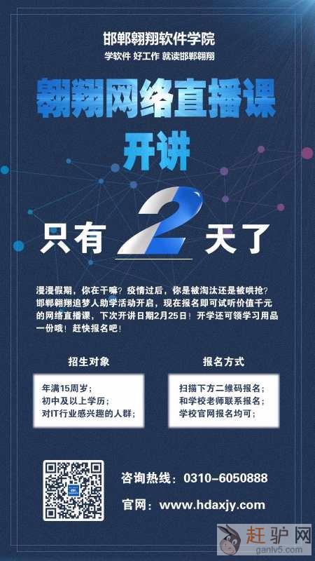 【邯郸翱翔软件学院www.ganlv5.com--网络直播课开讲倒计时】