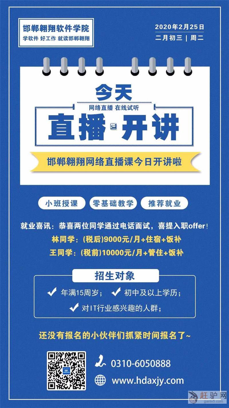【邯郸翱翔软件学院g+a+n+l+v+5+c+o+m--网络直播课开通了啦】